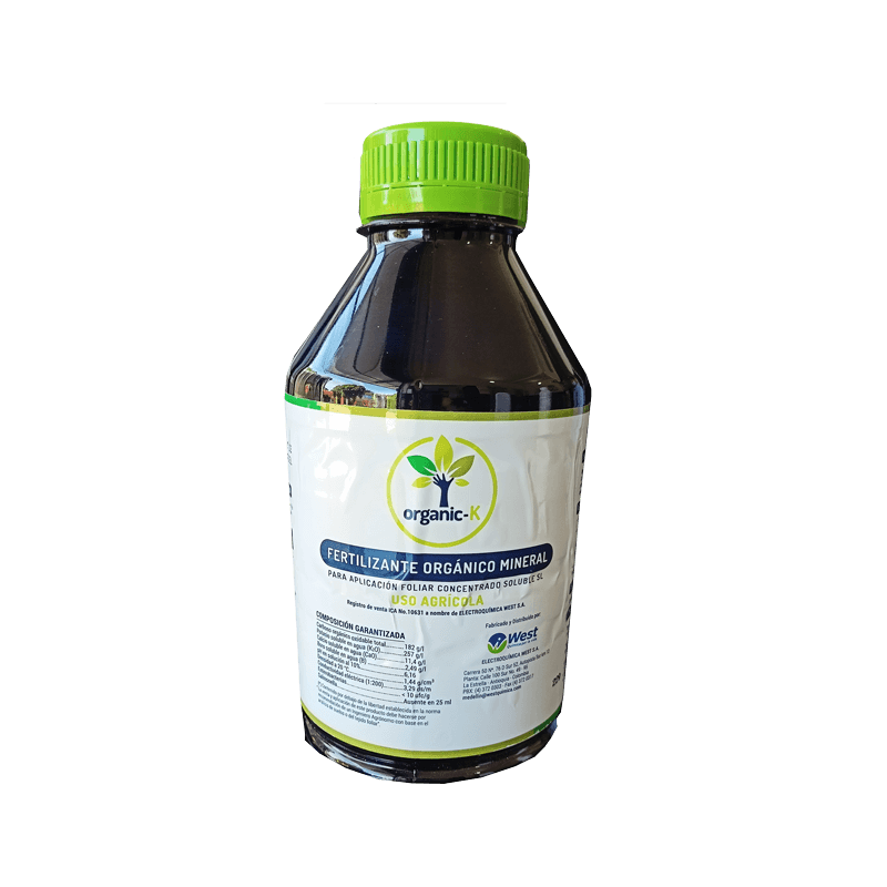 Nombre de producto: ORGANIC-K Marca: West Clasificación: Foliar Ingrediente activo: Carbono Orgánico Presentaciones: 1 LT – 4 LT – 20 LT